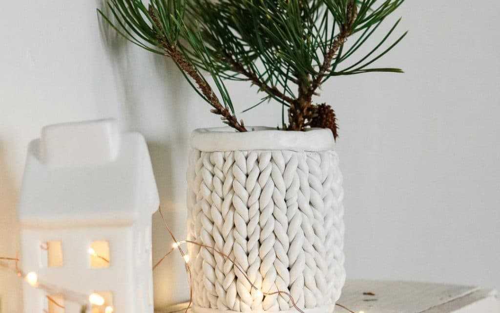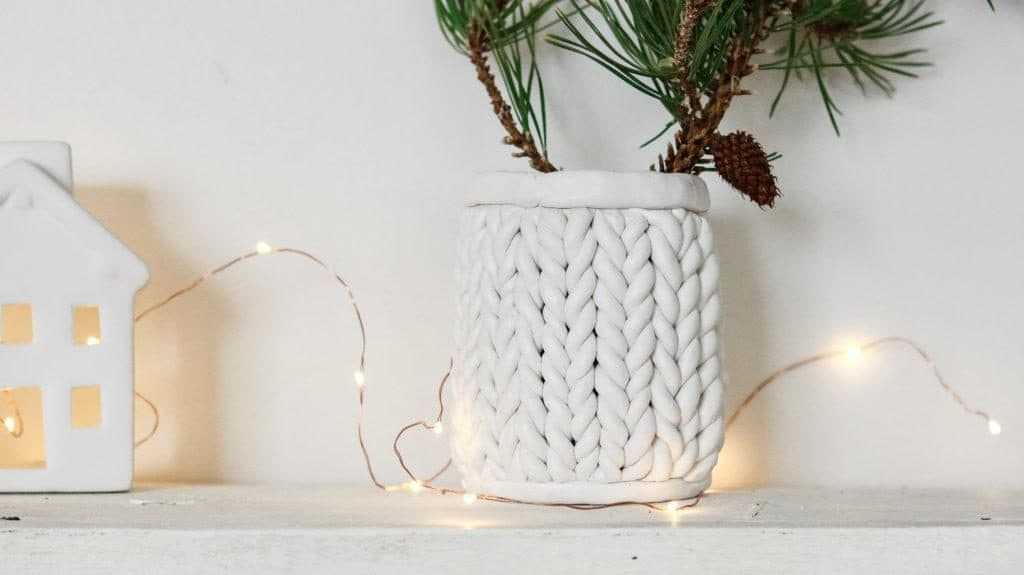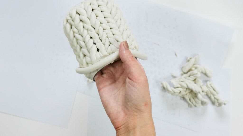 Теперь выясним, как сделать вазу своими руками из глины. В результате получится необычная вещь с узором в виде вязки. Для изготовления понадобятся такие компоненты: