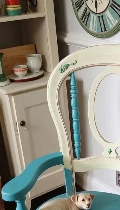 2. Перекраска в Verdigris: Создайте эффект патины с помощью краски цвета Verdigris (имитация окислившейся меди). Этот оттенок сейчас очень популярен и добавит стулу винтажный шарм. Идеально для деревянных стульев.