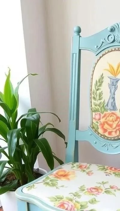 1. Декупаж в стиле Art Deco: Используйте салфетки или специальные карты для декупажа с геометрическими узорами, характерными для Art Deco, чтобы придать стулу роскошный и утонченный вид. Подчеркните детали золотой или серебряной краской. Это соответствует трендам мебели 2025.