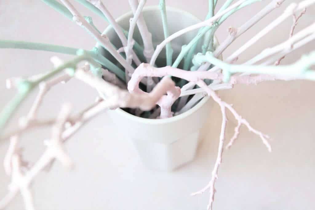 Для этого эстетичного варианта декора вазы своими руками можно использовать вазу любой формы. Рекомендуем прибегнуть к вазе цилиндрической формы. Нанесите клей и начинайте обматывать ее бечевкой от основания до самого верха. Дождитесь пока клей плотно зафиксирует бечевку. Затем поместите нижнюю часть вазы в емкость с краской. Насыщенность и консистенцию можно выбрать самостоятельно. Оставьте вазу сушиться. Как только вазочка высохнет вы сможете лицезреть плоды усилий. Плавный переход любимого цвета на изысканной вазе.