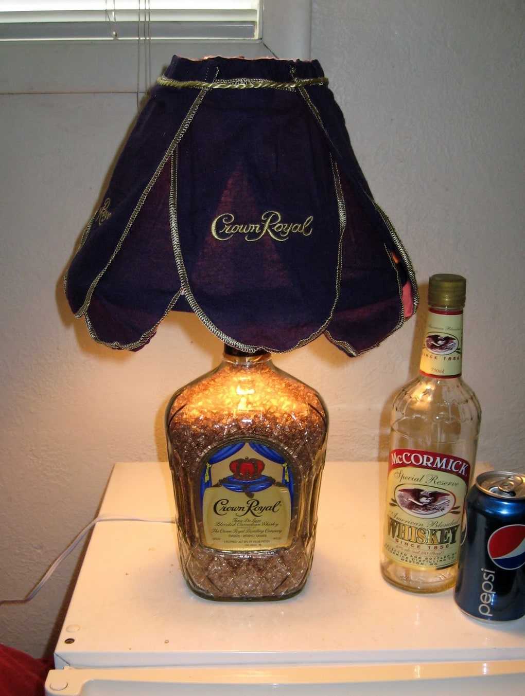 Другой вариант красивого ночника – торшер. К такому случаю очень подойдет стильная бутылка из-под дорогого алкоголя. Одновременно с этим можно взять любую тару из красивого стекла или необычной формы. Даже светильник из пивной бутылки будет выглядеть очень оригинально.