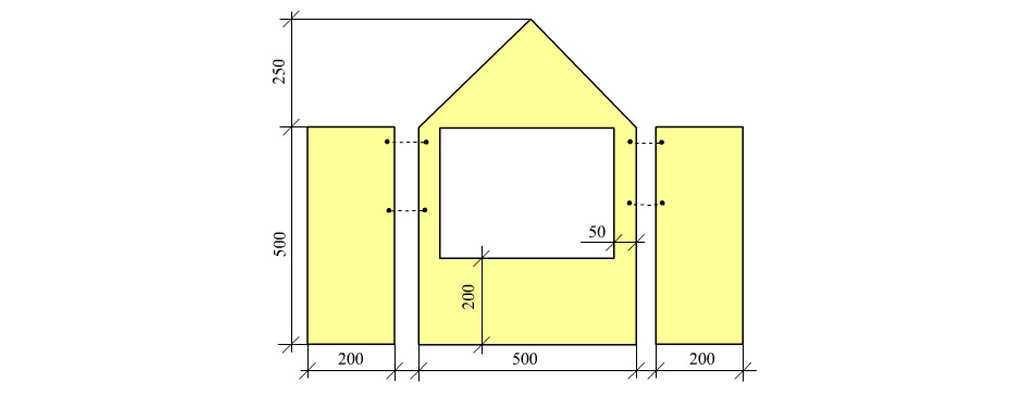 - Опираясь на представленные размеры, выпилите из фанеры 3 заготовки: центральную и 2 боковины. Оклейте их тканью.