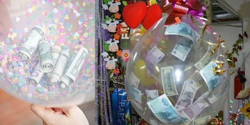 Можно совместить это с нашим вариантом подарка. Свернуть деньги и поместить в воздушный шар внутрь. Получатся шары с сюрпризом, главное, чтобы именинник вовремя заметил это!
