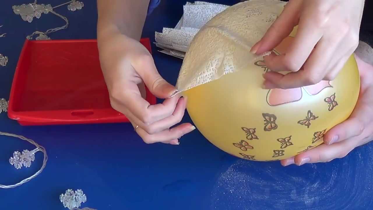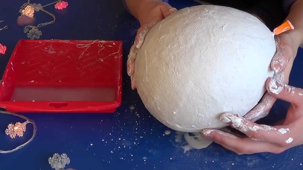 2. Смачиваем бинт в воде и начинаем наклеивать на шарик.