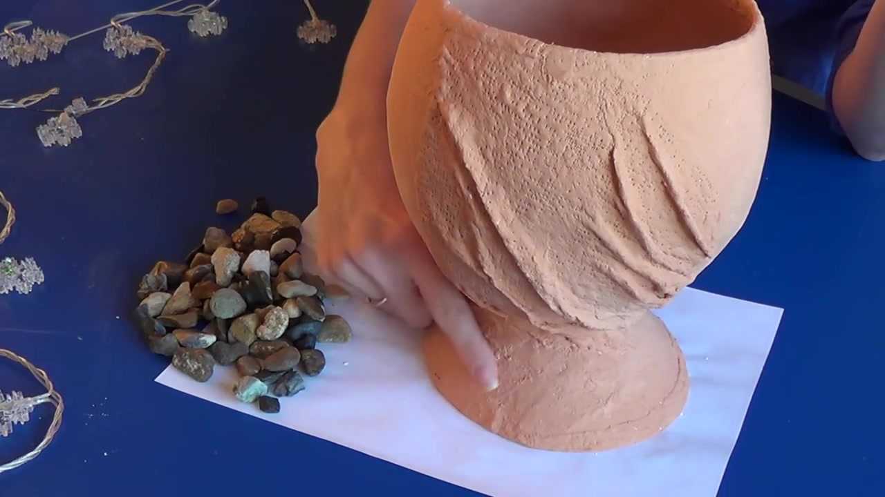 9. Когда краска высохнет, можно украсить вазу мелкими камушками. Будет смотреться красиво и необычно.