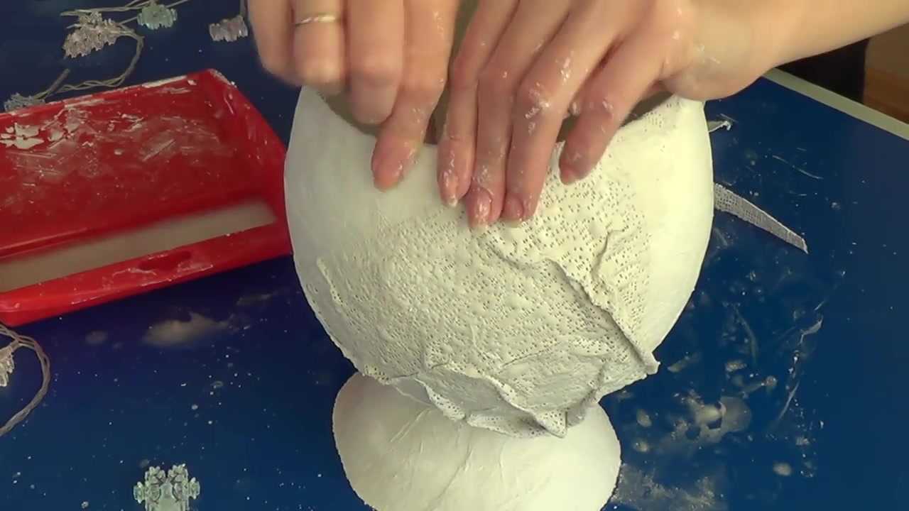 - Этот каркас обкладываем внутри (а затем снаружи) полосками ткани, пропитанными гипсовым раствором сметанной густоты.