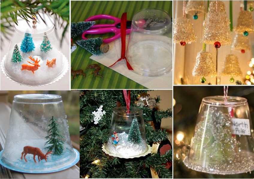 Еще одна идея — сделать елочные игрушки в виде снежных шаров и колокольчиков