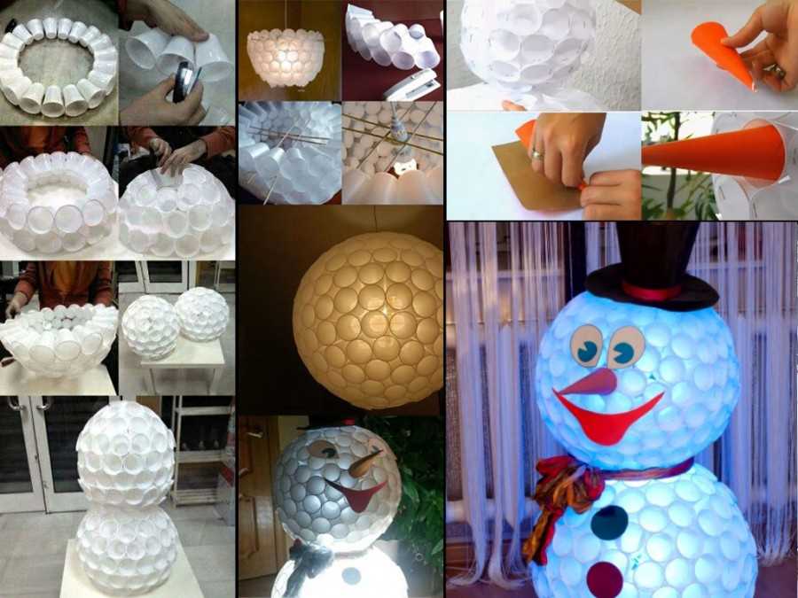 Пошаговый мастер-класс, чтобы сделать снеговика из пластиковых стаканчиков: