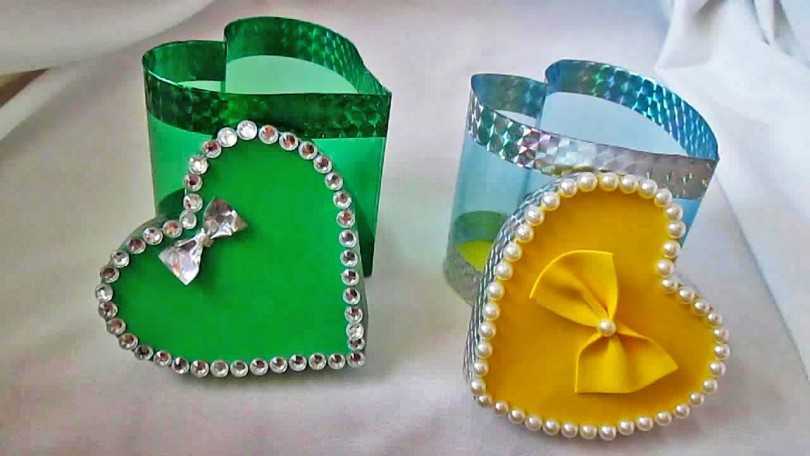 Симпатичные коробочки подойдут для упаковки небольших подарков или для оформления праздничного стола, для их создания нужны только стаканчики, ножницы и линейка. Элементы украшения коробочек могут быть любыми, в зависимости от повода торжества и вкуса создателя поделки.