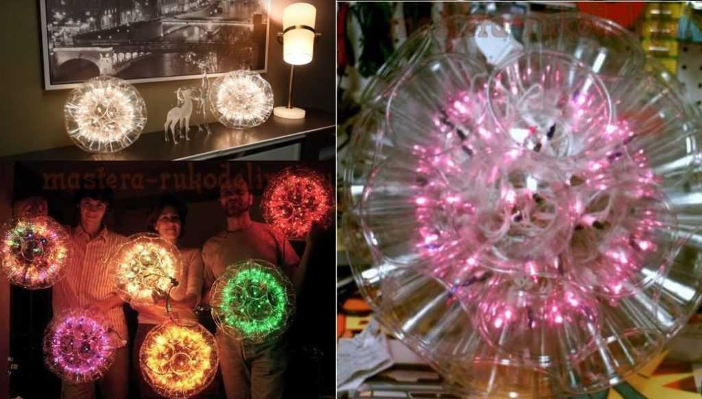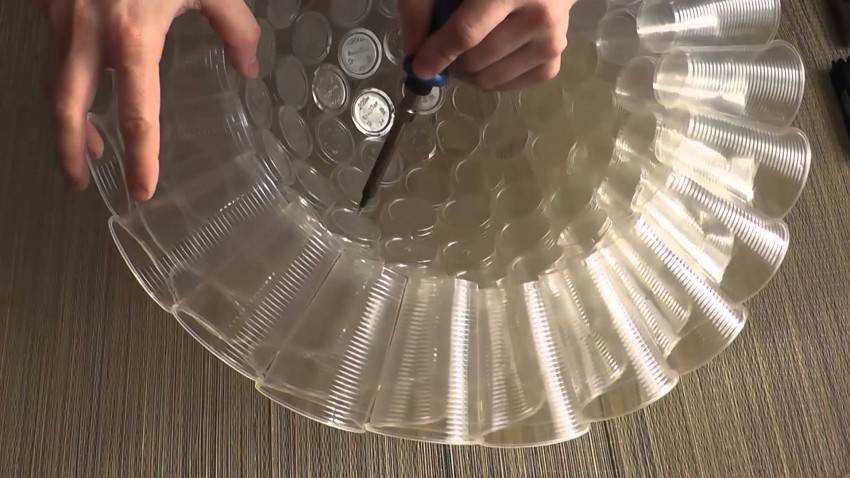 Кроме достаточно простых изделий, существуют поделки из пластиковых стаканчиков, которые необходимо собирать пошагово. К ним относятся изделия с использованием светодиодов. Для таких самоделок характерно то, что внутри помещаются светодиоды, которые подсвечивают всю конструкцию изнутри. В результате она получает необычный внешний вид, который можно сделать ещё более оригинальным, если использовать разноцветные светодиоды и стаканчики, изготовленные из различных сортов пластика.