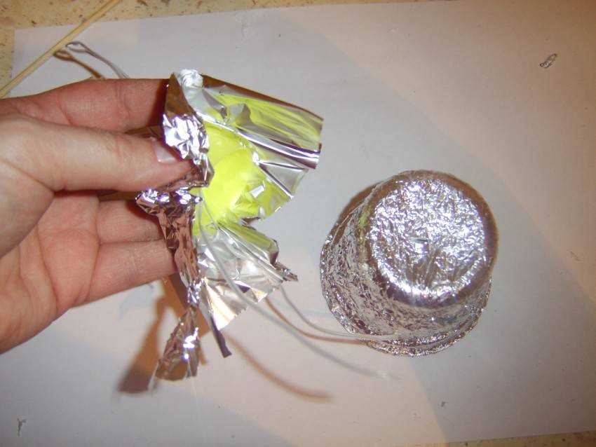- Другие елочки оберните блестящими кусочками синельной проволоки.