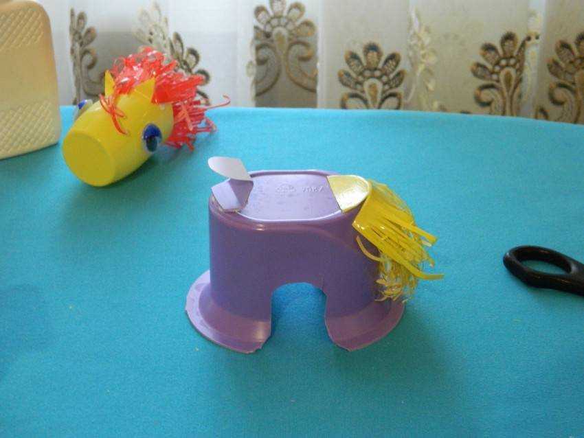 Лучше всего скреплять стаканчики степлером с мелкими скобами, что их менее всего было заметно в готовом изделии. При формировании головы может образоваться на верху отверстие, которое легко закрыть головным убором.