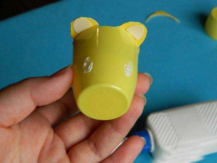 Для глаз можно использовать теннисные мячи, предварительно окрасив их в черный или темно-синий цвет. Нос также можно вылепить из пластилина и прикрепить к одному из стаканчиков, многие используют для носа фольгу