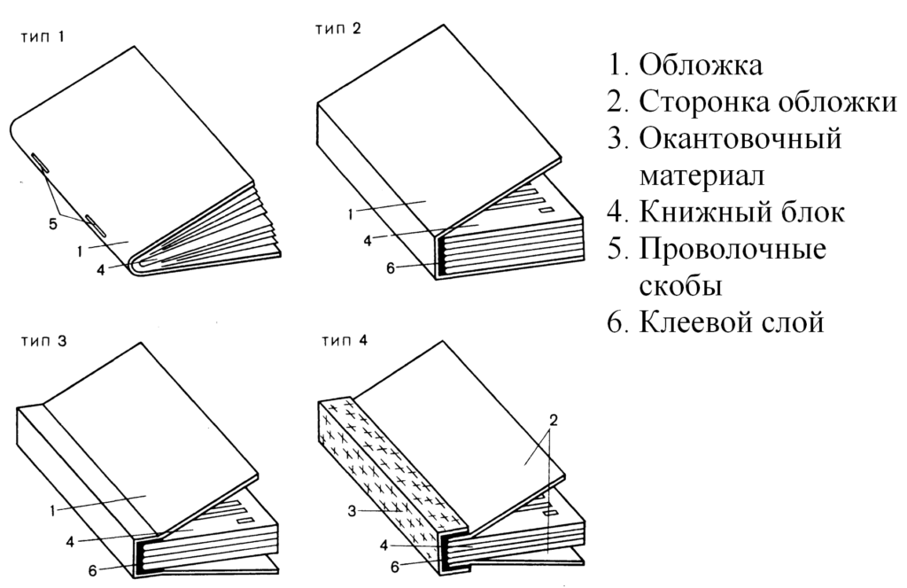 - Обложка, или переплетная крышка, защищает книжный блок от повреждения. Ее делают из двух картонных прямоугольников. Картон может быть обтянут различными материалами, например, бумагой, тканью, ледерином или кожей. У некоторых экземпляров переплетная крышка по углам укреплена металлическими накладками.