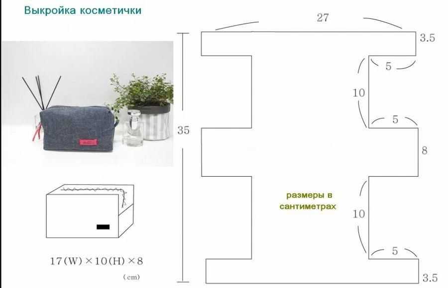 Очень важно определиться с размерами вашей косметички, от этого будет зависеть, какая выкройка и у вас получится в итоге