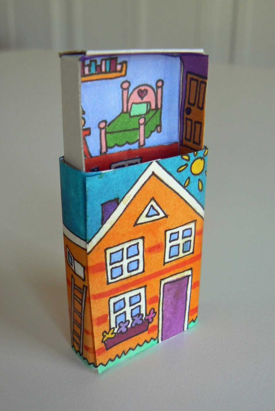 Если коробка имеет откидную крышку, ее можно использовать в качестве фона, изобразив на ней голубое небо с облаками и солнцем или ночное небо со звездами.