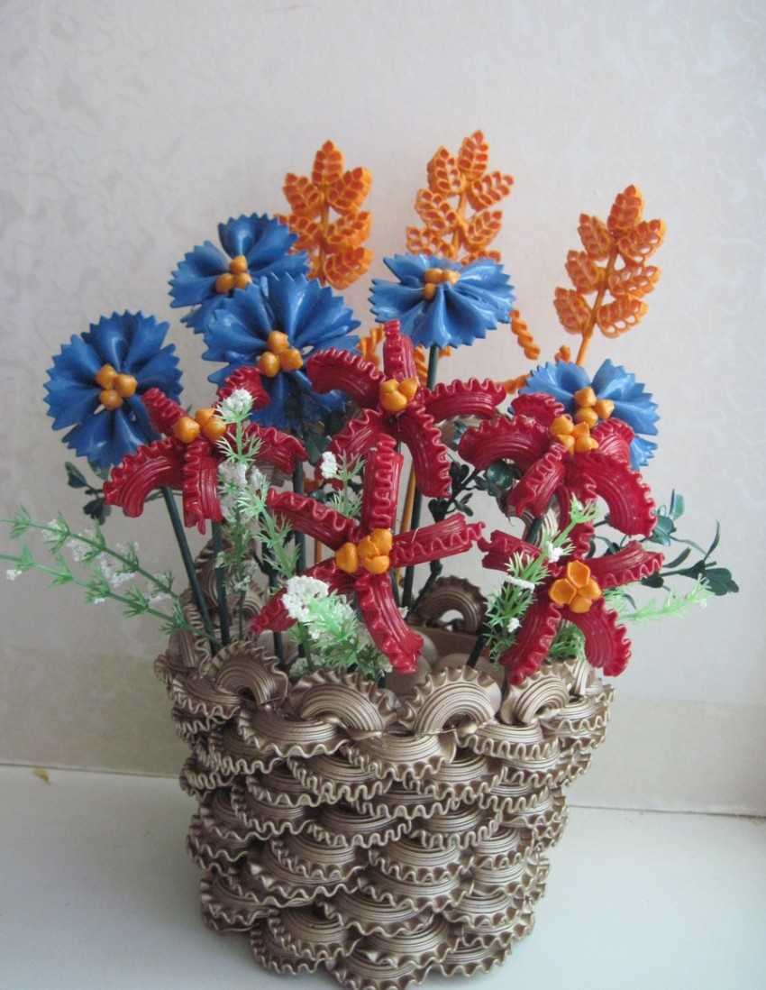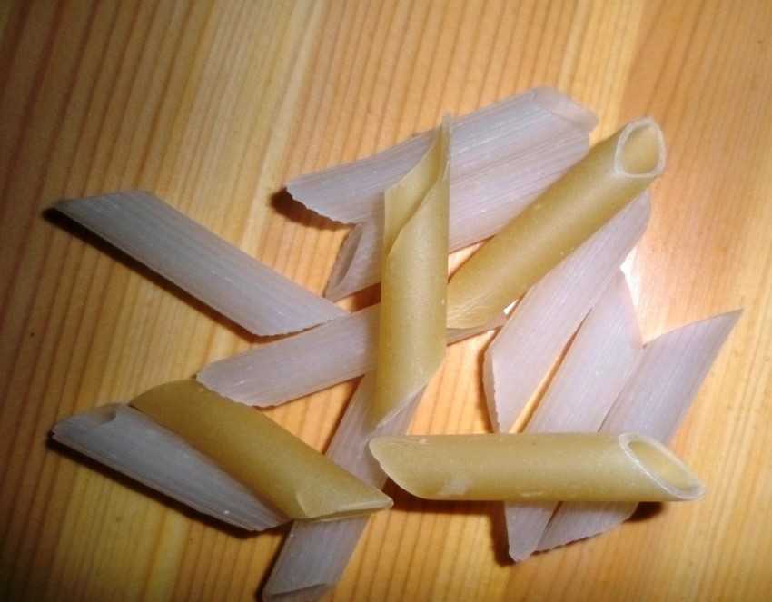 Размер макаронин следует выбирать в зависимости от размера вазы. Если бутылка небольшая, не следует использовать слишком крупные макаронные изделия.