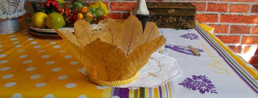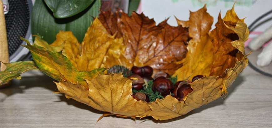 Красивые осенние листья можно использовать не только для простеньких детских поделок, но и для полноценного украшения интерьера. Одно из таких изделий — фруктовая ваза.