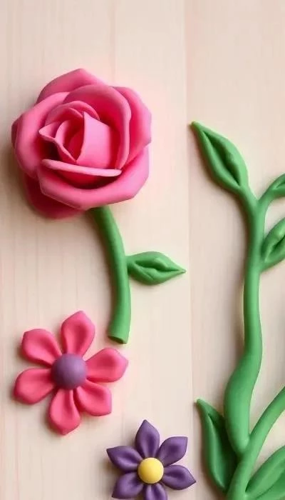 4. Роза: Изящный цветок, требующий аккуратности и терпения. Материалы: красный, зеленый и желтый пластилин. Сложность: Средняя.