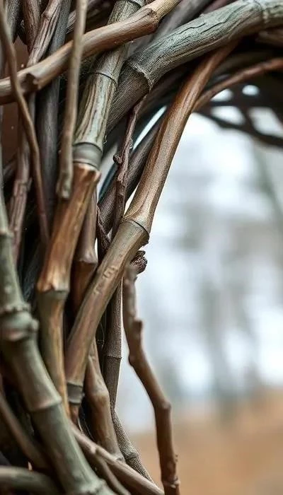 Советы по выбору веток: Для прочных конструкций выбирайте толстые и крепкие ветки. Для гибких элементов подойдут тонкие и гибкие ветки. Обратите внимание на породу дерева: ива и орешник – отличный выбор для плетения, береза – для создания светлых и воздушных композиций.