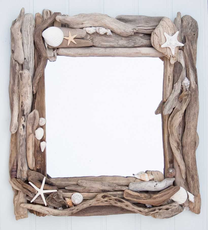 Нетривиальный декор выходит из плавающей древесины, выброшенной на берег моря. Из-за солёной воды она обладает бежевым или сероватым колером. Полая внутренность обещает лёгкость изделию. К таким экземплярам прекрасно подходит галька, раковины, камни.
