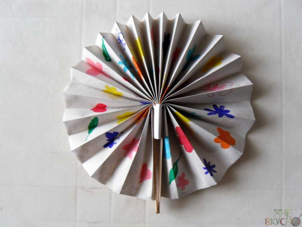 Вот еще одна простая идея с веером. Основу делаем из цветной бумаги и приклеиваем сверху разные цветы.