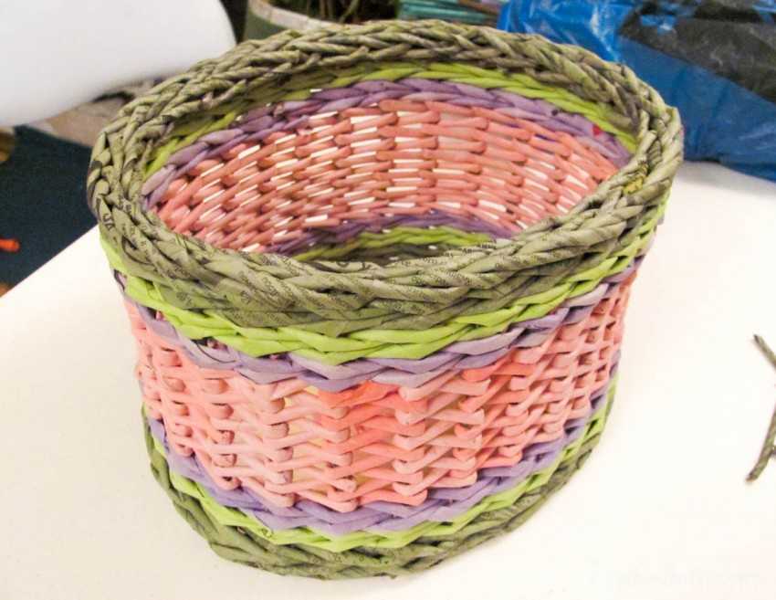 Для плетения корзины из газеты понадобиться завершить работу конечной обработкой для придания материалу прочности и влагоустойчивости: