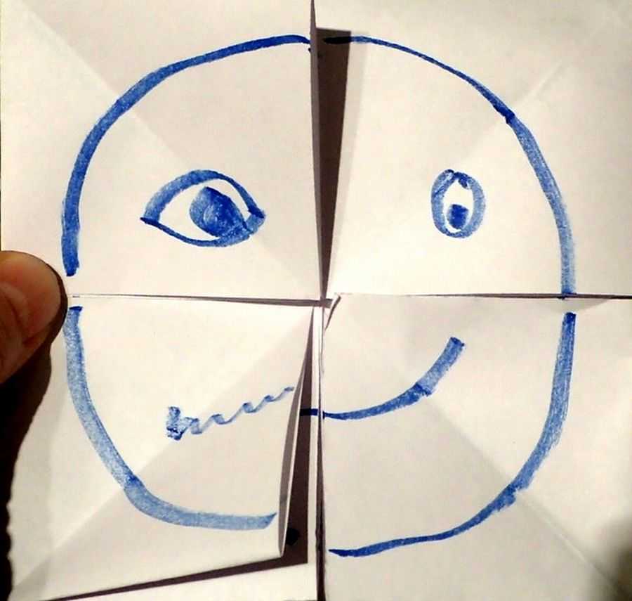 - Сворачиваем листок вдвое, так чтобы изображение было на лицевой стороне