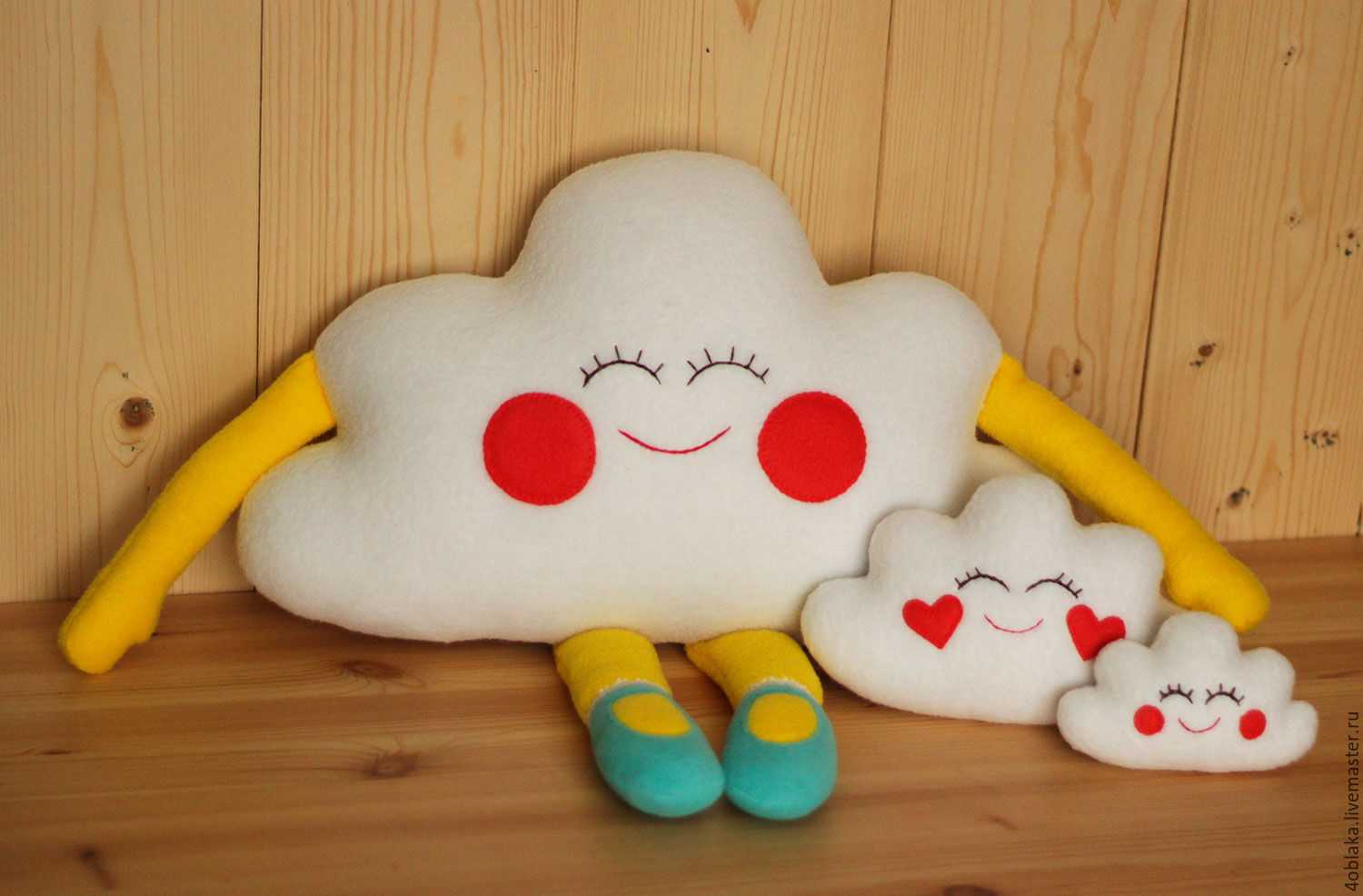 Красивая, мягкая, необычной формы и задумка готова. Можно облачко декорировать, добавив аппликацию, разноцветные пуговицы, сверкающие бусины.