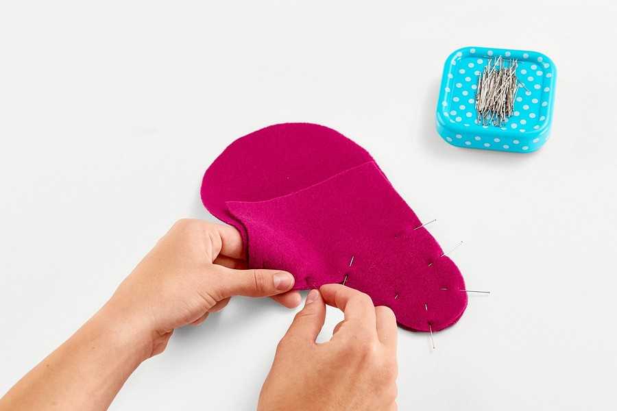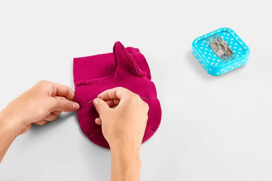 В месте перегиба морды ткань нужно немного присобрать. Лучше ее зафиксировать булавкой, а затем прошить.