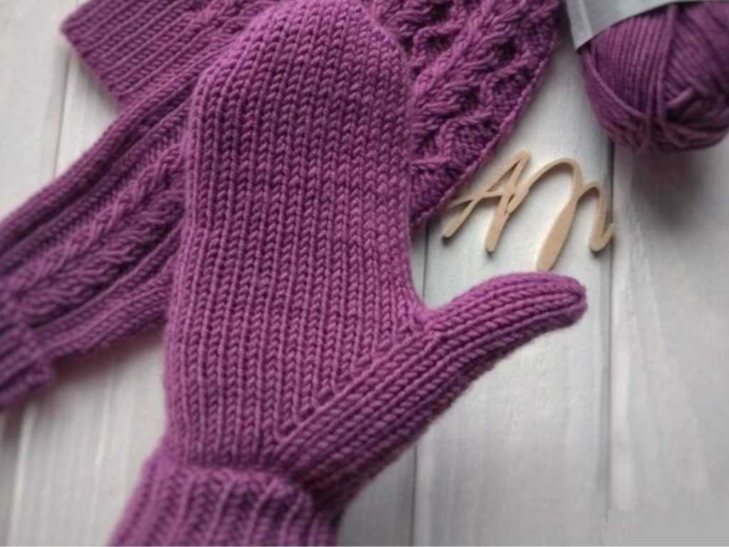 Вяжем далее по кругу до конца мизинца, чтобы приступить к убавлению петель. Вяжем мысок, а для этого складываем варежку. На каждой стороне на полученном сгибе вяжем 2 петли вместе в конце и начале ряда. Делаем убавки через ряд. Когда варежка довяжется до безымянного пальца, делаем убавки в каждом ряду до остатка 2-3 петли. Соберите петли и обрежьте нить.