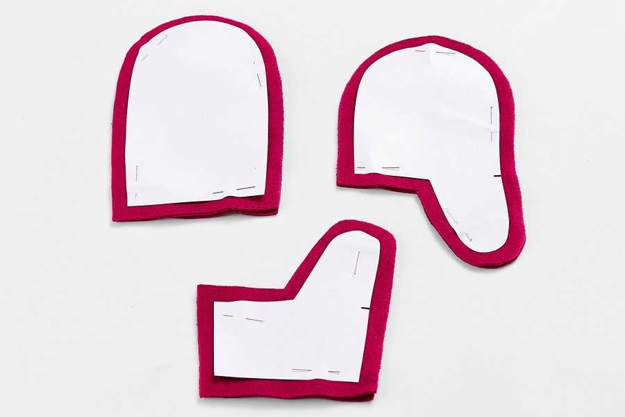 Для начала нам нужно сделать выкройки. Их можно сделать по удобным варежкам или по способу выше