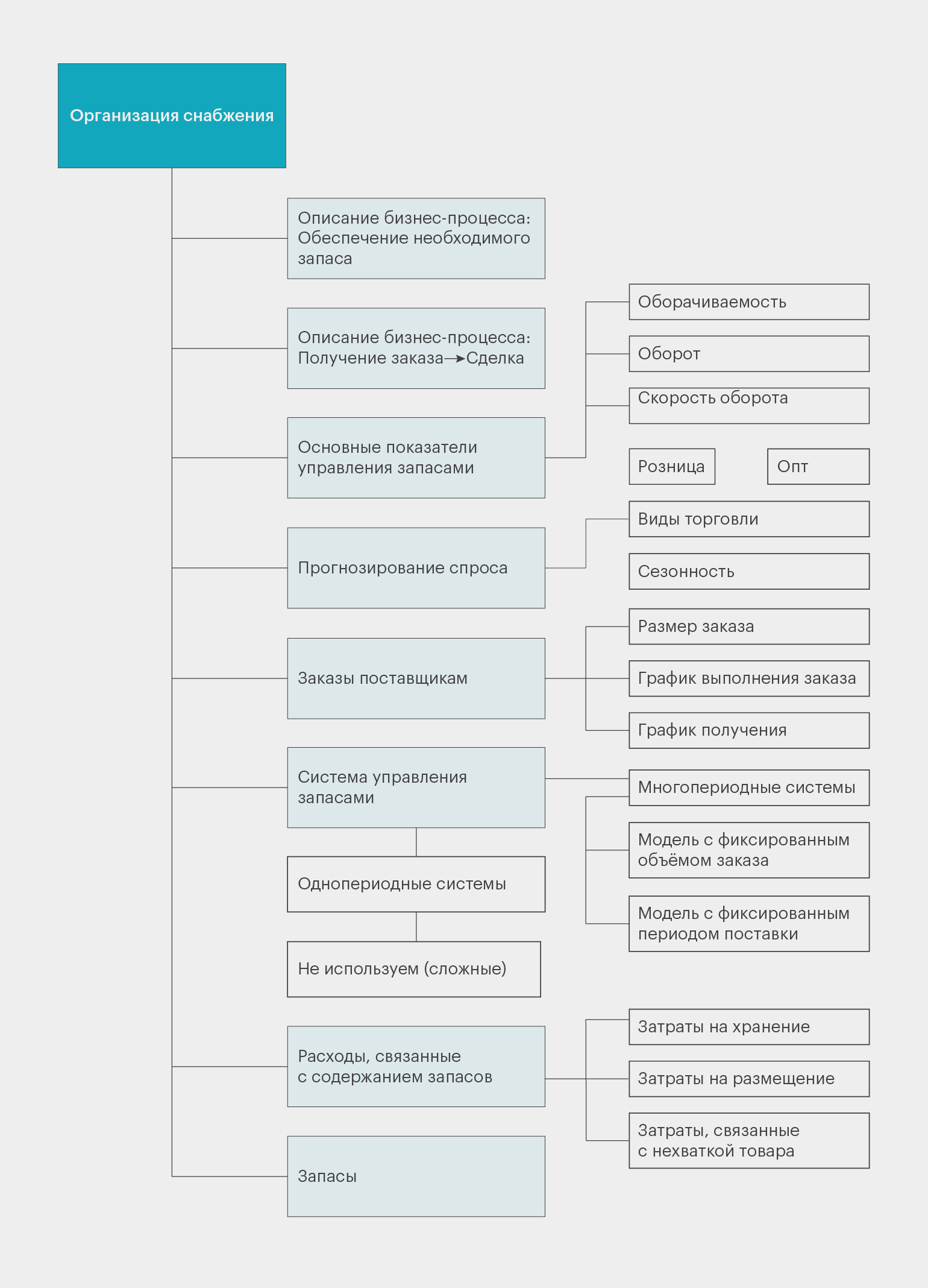 При процессном подходе описывают не результат, а действия, которые необходимо совершить для достижения результата. Процесс можно детализировать сколько угодно — вплоть до отдельных операций для каждого сотрудника. Получается блок-схема.