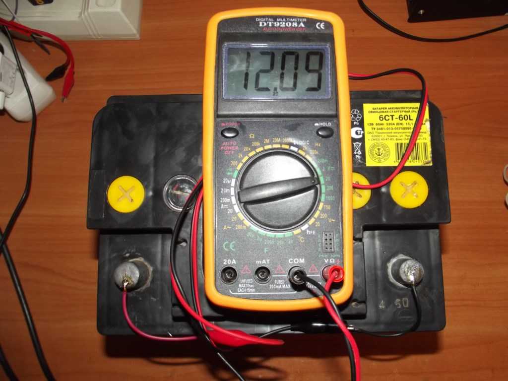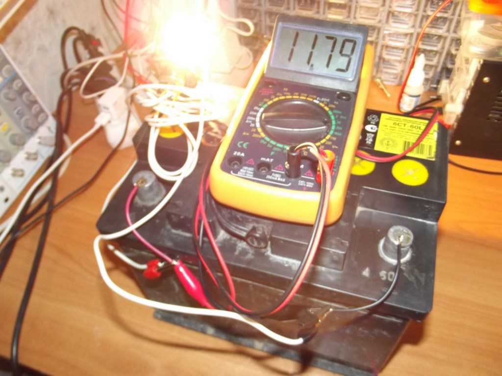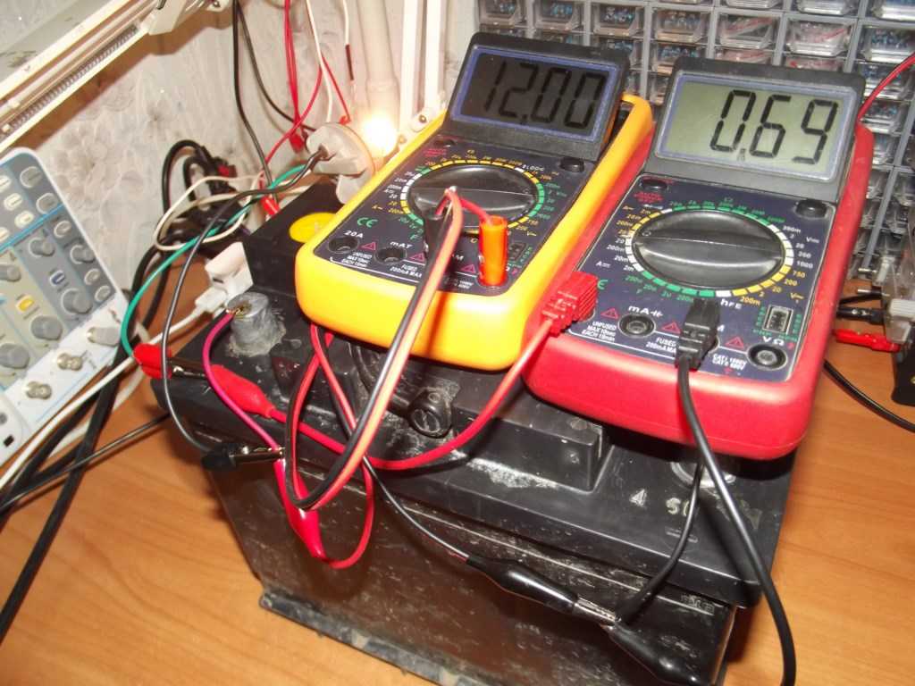 Первым делом давайте замеряем напряжение на клеммах аккумулятора