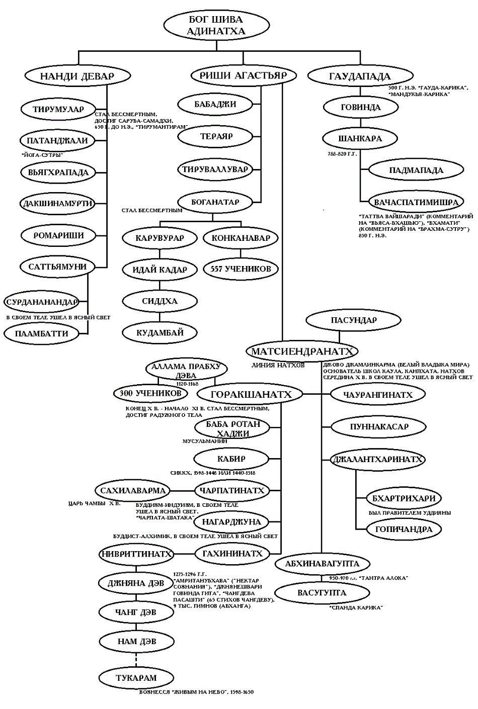 Во-первых упадеша (глава) Хатха Йога Прадипика, текст XV века, найден список йогов, которых называют махасиддхами. В этом списке есть ряд имен, общих с именами, найденными в списке Варна (на) ратнакара:
