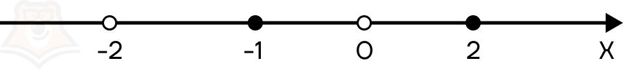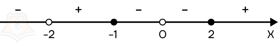 Нули числителя: х2 — х — 2 = 0. Тогда х = -1 и х = 2.