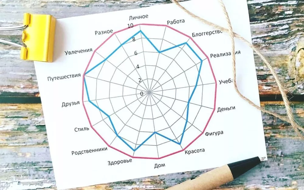 Колесо баланса простыми словами — это инструмент, который позволяет определить слабые и сильные стороны жизни